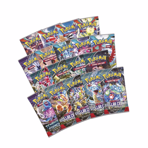 Con su caparazón resplandeciente hecho de energía Terastal, el Pokémon legendario Terapagos brilla con fuerza en su forma estelar superpoderosa. Ahora puedes añadir esta misteriosa fuerza a tus propias barajas de JCC Pokémon con una carta promocional foil que presenta a Terapagos ex. A esta carta se suman dos Pokémon Tera ex estelares listos para jugar y un cofre del tesoro repleto de accesorios de juego, paquetes de mejora e incluso un conjunto completo de cartas de energía básica con un aspecto foil cristalino.