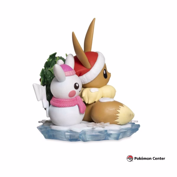 En un país de las maravillas de hielo, Eevee juega con un nuevo amigo: ¡una versión de nieve de su amigo, Pikachu! Celebra la temporada con esta figura del Pokémon Evolución que captura la diversión y la festividad del invierno.