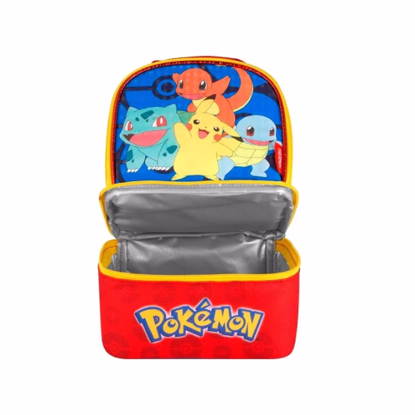 Esta lonchera para niños, súper suave y bien elaborada, con dos compartimentos, es fácil de sostener, tiene un asa de transporte acolchada y mantiene la comida fresca por más tiempo con un aislamiento de espuma celular de alta calidad. Todos los materiales son 100% libres de PVC y fáciles de limpiar. Los colores brillantes y las ilustraciones son memorables y visualmente estimulantes, diseñados para obtener la máxima «aprobación divertida» de sus pequeños seres queridos. Las áreas con doble cierre mantienen los alimentos seguros en sus propios compartimentos y con temperatura controlada para una mejor frescura.En el frente se muestran a Squirtle, Charmander y Bulbasaur además de Pikachu.
