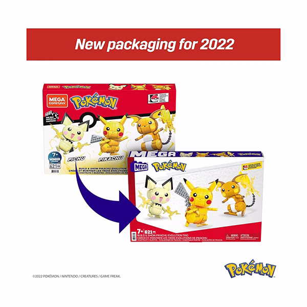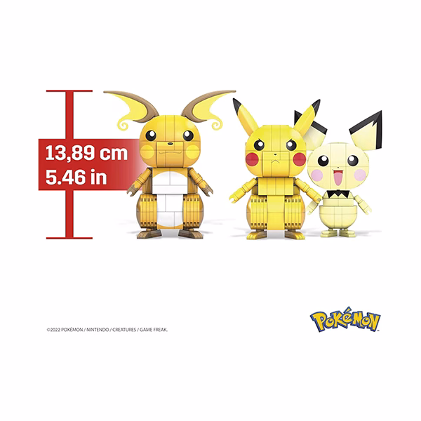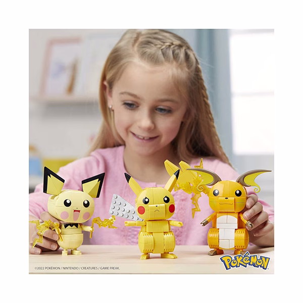 - Prepárate para la batalla con un trío verdaderamente electrizante. Este set de construcción presenta las evoluciones completas de Pichu, incluidos Pikachu y Raichu, cada uno con extremidades articuladas y equipado con su propio poder especial. Las piezas especiales que caben en las manos de Pichu representan energía eléctrica, mientras que Pikachu y Raichu están equipados con sus propios y poderosos movimientos. Todo se combina para ofrecer una experiencia de construcción sorprendentemente auténtica. Ideal para mayores de 6 años.