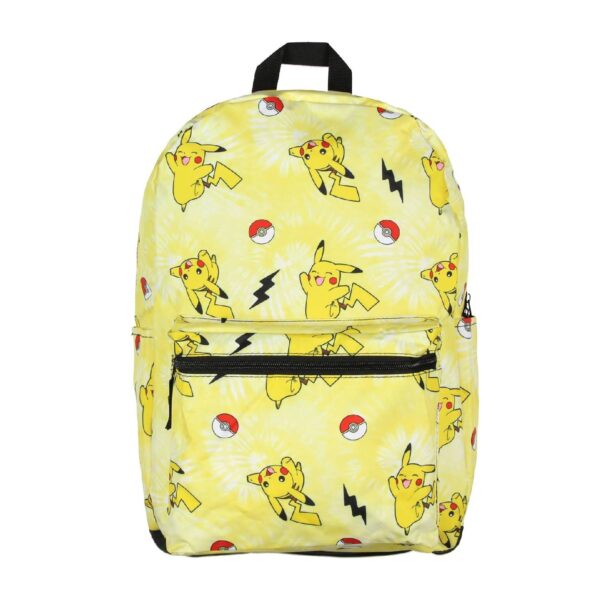 Destaca entre la multitud con la impactante impresión de Pikachu, el querido Pokémon eléctrico y el icónico Pokeball, acompañado de rayos que evocan la energía electrizante del mundo Pokémon. El fondo de teñido anudado amarillo brillante añade un elemento divertido y divertido al diseño de la mochila, aportando una explosión de color a tus aventuras diarias.