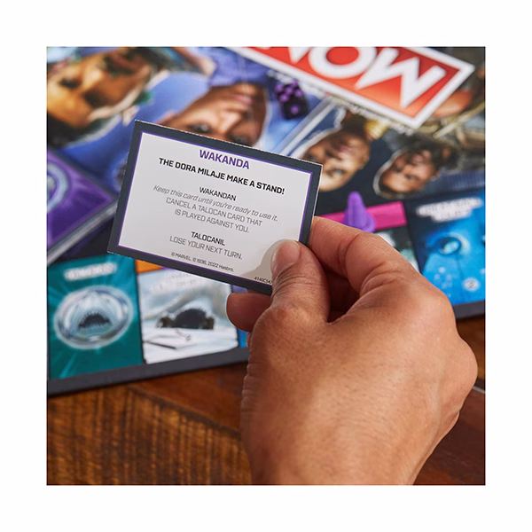 - Black Panther: WAKANDA FOREVER THEME: Esta edición del juego Monopoly presenta obras de arte, personajes, componentes y jugabilidad inspirados en la película Black Panther: Wakanda Forever de Marvel Studios