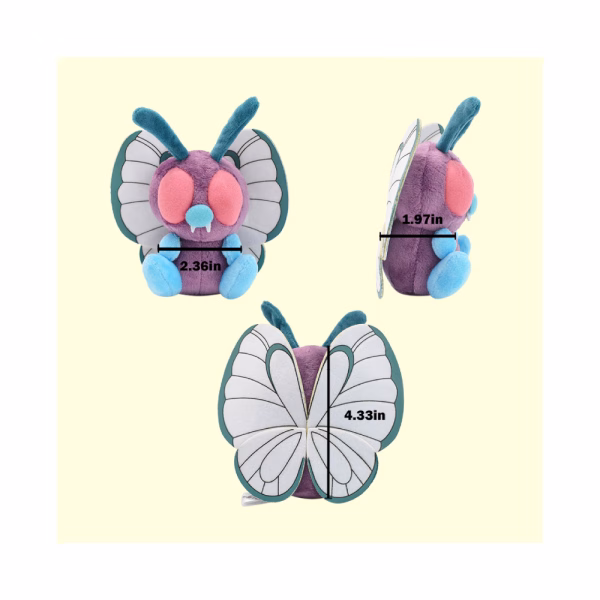 - Diseño detallado: Captura la esencia de Butterfree con sus alas de colores vibrantes, sus antenas largas y su sonrisa encantadora.