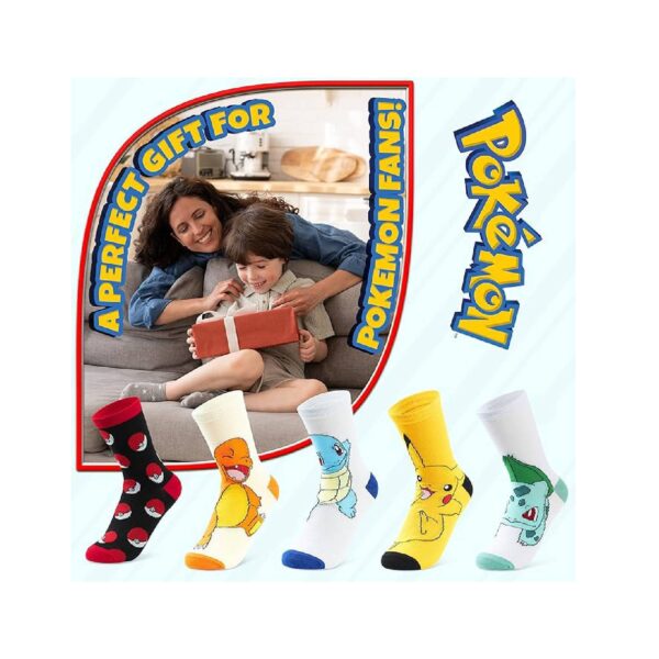 - Con los personajes favoritos Pikachu, Bulbasaur, Charmander y Squirtle, estos calcetines son el regalo perfecto para cualquier fanático de Pokémon.