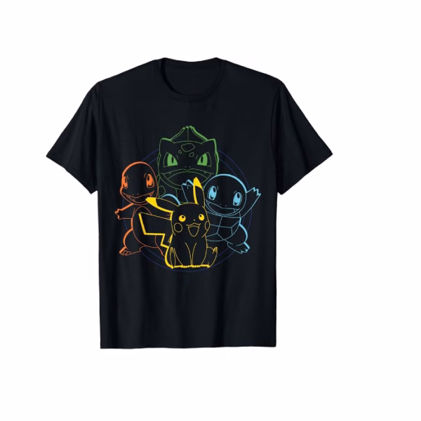 Esta camiseta es una pieza clásica y esencial para cualquier fan de Pokémon, ya que rinde homenaje a los cinco Pokémon iniciales de la primera generación. Es una prenda que evoca la nostalgia y celebra los orígenes de la franquicia.