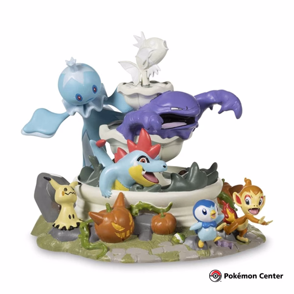 • Cuenta con Frillish, Muk, Croconaw, Chimchar, Piplup y Mimikyu, además de una fuente temática de Magikarp y calabazas Pokémon