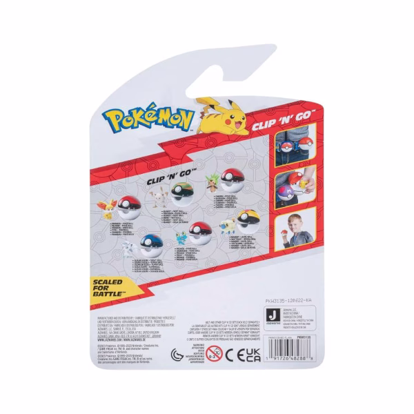 - CROSS PLAY: funciona con cualquier cinturón de Poké Ball Pokémon o Clip ‘N’ Go de 2 pulgadas (se vende por separado).