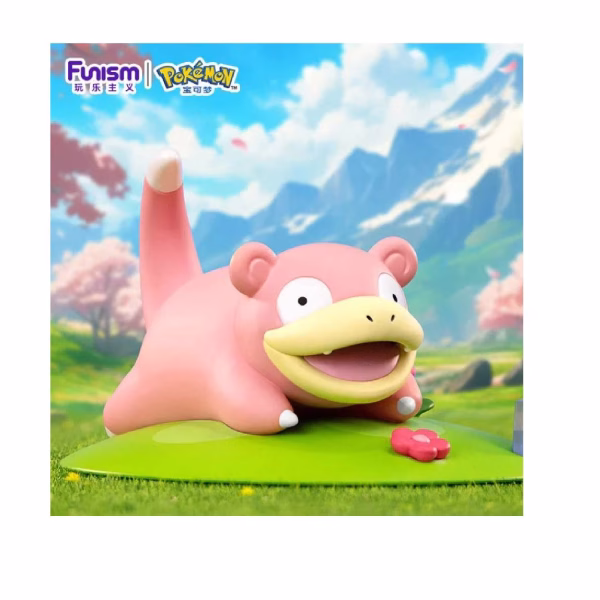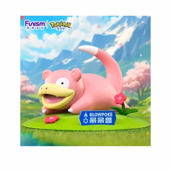 El diseño Funism de Slowpoke lo presenta típicamente en una pose relajada o de descanso, fiel a su reputación de ser un Pokémon lento e indiferente. Muestra su característico color rosa pálido con un acabado liso. Los detalles se centran en su expresión despreocupada, la cola distintiva y las garras.