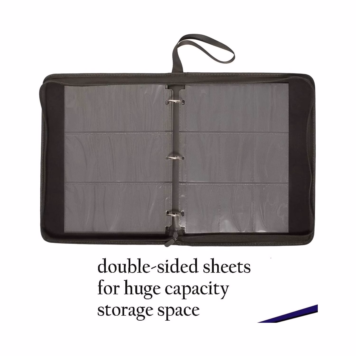 - La cremallera de calidad sella la carpeta para mantener las tarjetas intactas; un diseño de pulsera adicional hace que sea fácil de transportar.