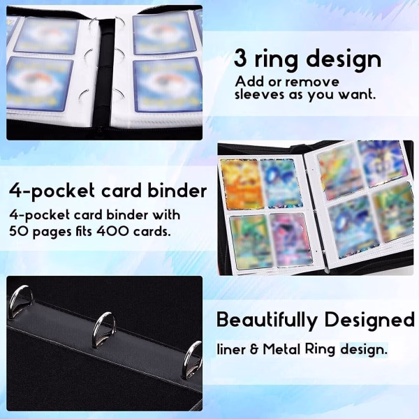 - Gran capacidad 4 bolsillos para tarjetas comerciales, se adapta a 400 tarjetas con 50 fundas extraíbles