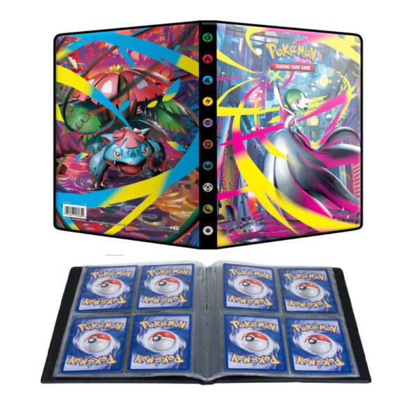 - Carpeta de 4 bolsillos con licencia oficial del juego de cartas coleccionables Pokémon con Mega Venusaur y Mega Gardevoir de Pokémon Mega Evolution