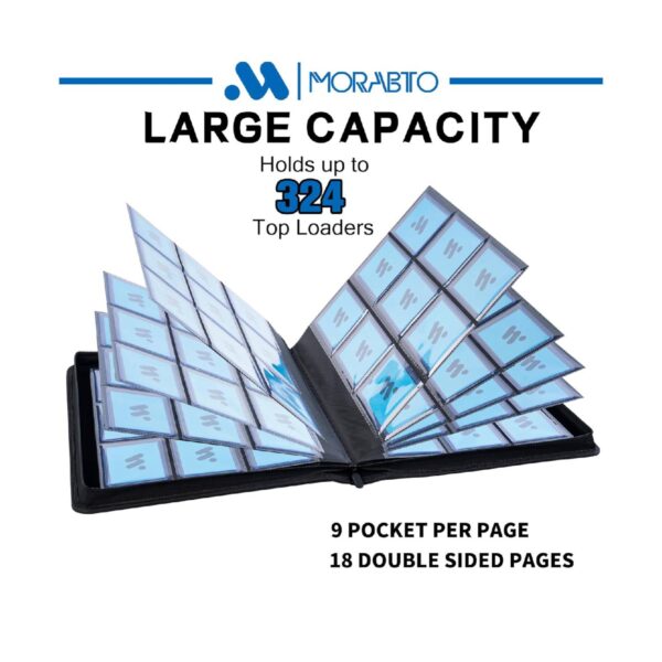 - Gran capacidad de 324 tarjetas de carga superior con 18 páginas de doble cara, 9 bolsillos por página, tiene capacidad para hasta 324 cargadores .