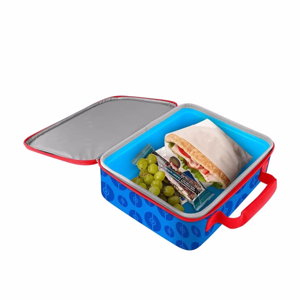 Esta lonchera suave para niños luce fresca y se mantiene fresca cuando llevas el almuerzo a la escuela. El interior tiene aislamiento de espuma celular de alta calidad y un revestimiento de LDPE duradero y fácil de limpiar con protección antimicrobiana. Todos los materiales están libres de PVC.