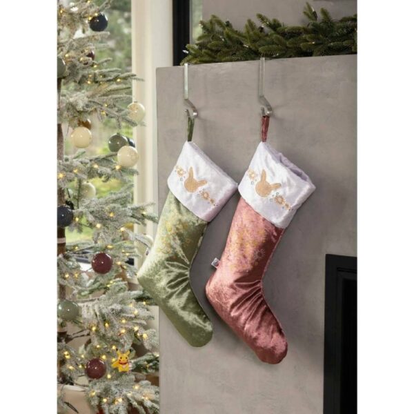 - Incluye un calcetín decorativo de terciopelo rojo con puño blanco.