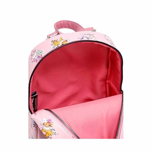 ¡Dirígete al Gimnasio Pokémon con tus esenciales guardados en esta mini mochila! Esta mochila rosa de Pokémon presenta a todas las Eeveeluciones con fondos florales, además de un bolsillo delantero con cremallera y correas ajustables.