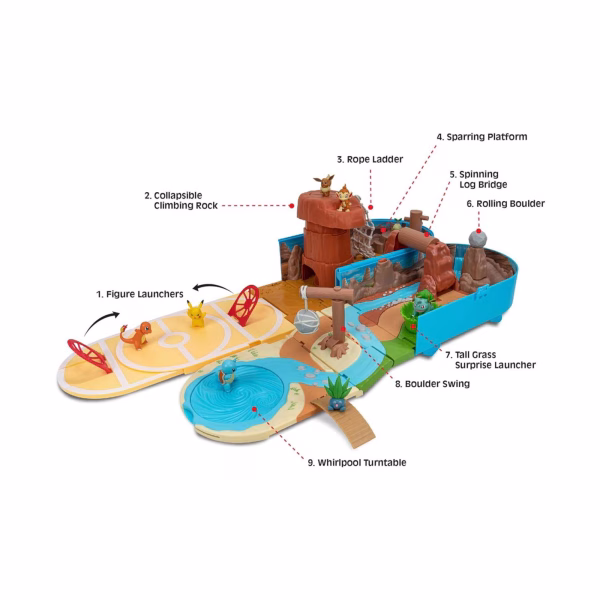 - El juego portátil Pokémon es adecuado para cualquier figura de Pokémon de 5 cm y se pliega fácilmente en una mochila icónica.