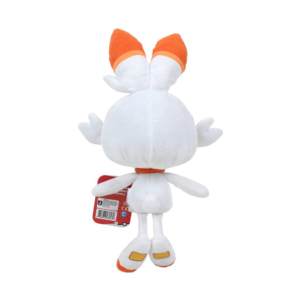 - El peluche captura la apariencia juguetona y enérgica de Scorbunny. Su pose suele ser dinámica, como si estuviera a punto de correr, con sus grandes orejas, sus ojos rojos vivaces y sus pies distintivos.