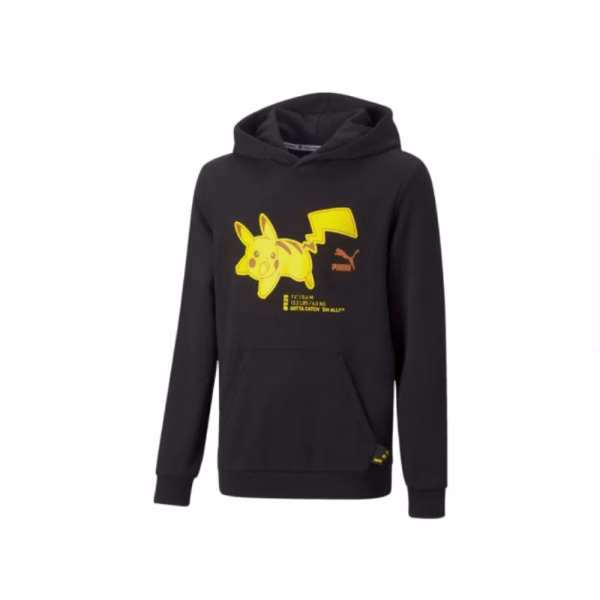 ¡Añade un toque de diversión y estilo a tu guardarropa con la Polera con Capucha Pikachu de Pokémon, Esta encantadora polera, diseñada en colaboración con Puma, presenta a Pikachu en un diseño vibrante y llamativo en la parte delantera, perfecto para cualquier fanático de Pokémon. Fabricada con materiales de alta calidad, esta polera ofrece comodidad y estilo en cada uso. Con su capucha y bolsillo frontal, es perfecta para mantenerse abrigado y llevar tus artículos esenciales a donde vayas. ¡Hazte con la tuya y muestra tu amor por Pokémon con esta polera con capucha única!