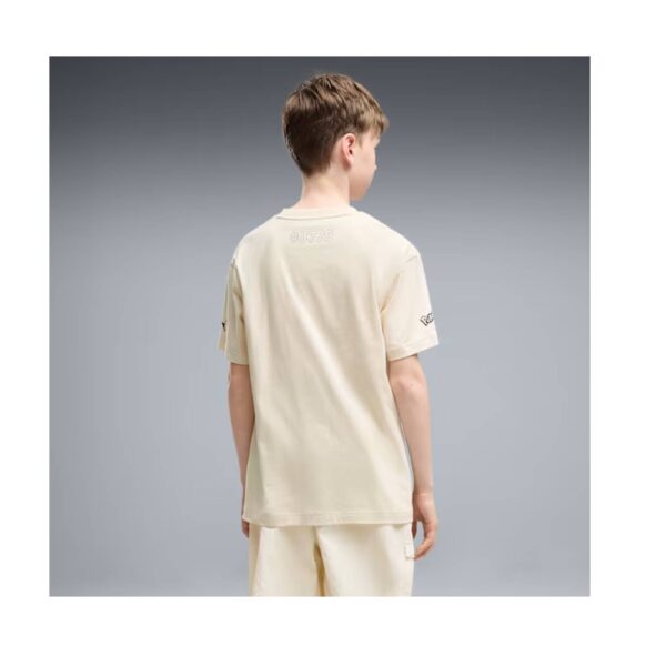 ¡Los niños podrán disfrutar de un día lleno de diversión al aire libre con Mimikyu a su lado! Esta camiseta blanca luce al Pokémon Disfraz, con los logotipos de PUMA y Pokémon en las mangas.