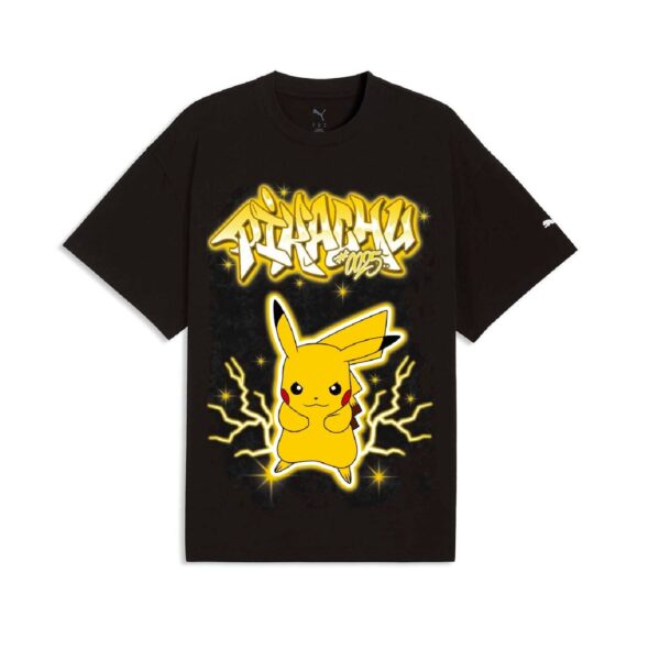 Correr por la cancha con Pikachu a tu lado no solo te da un toque especial, ¡sino que también te ves genial! Esta camiseta presenta al icónico Pokémon ratón sobre un fondo negro con su nombre escrito al estilo grafiti. En la parte trasera, aparece la palabra «Pokémon» escrita con el mismo estilo, junto con el logo de PUMA debajo.