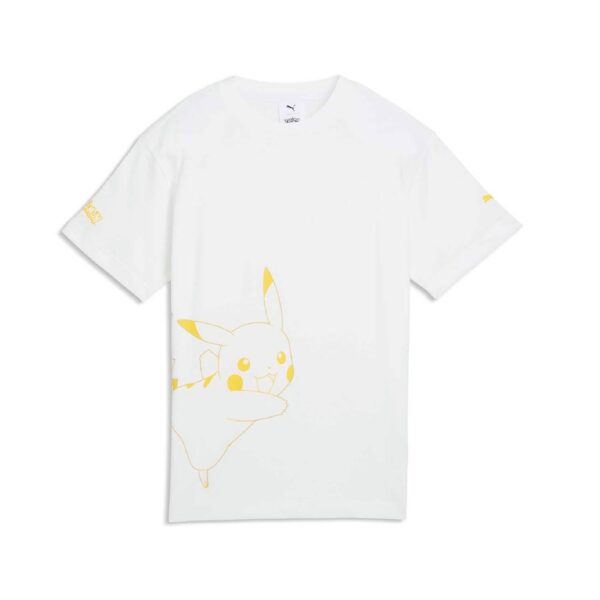¡Prepárate para un día de diversión al aire libre con Pikachu a tu lado! Esta camiseta blanca luce al Pokémon Ratón delineado en amarillo en la parte delantera, junto con los logotipos de PUMA y Pokémon.