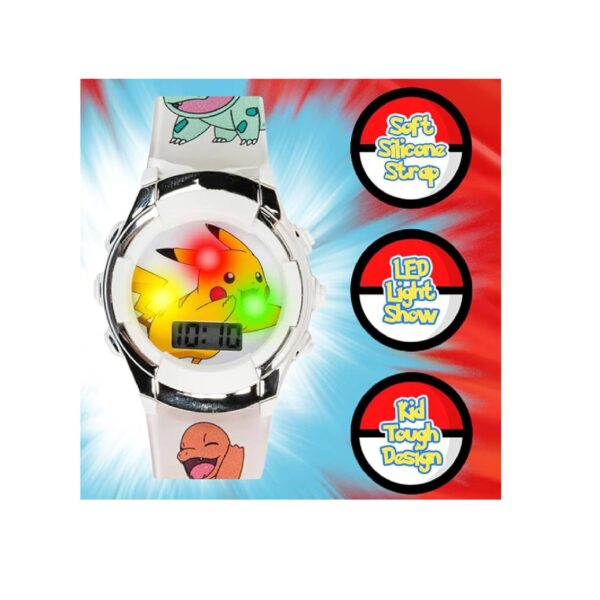 Pokemon Reloj De Cuarzo Digital Pikachu White Para Niños