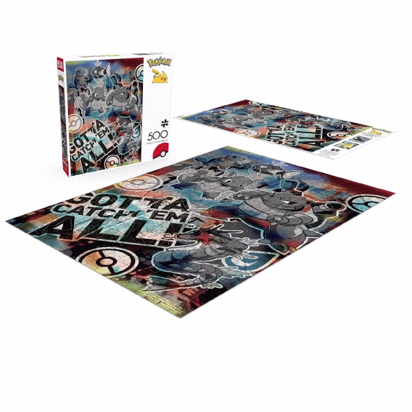 • Este rompecabezas de Pokémon de 500 piezas cuenta con las Evoluciones de Squirtle y Magikarp. Reúne a Squirtle, Wartortle, Blastoise, Magikarp y Gyarados frente a un fondo colorido y las palabras «Gotta Catch ‘Em All!»™.