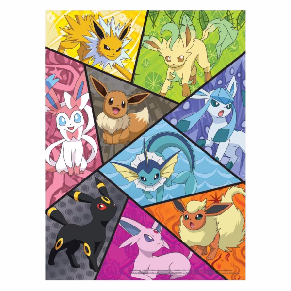 Este Multipack de Pokémon de 4 en 1 se trata todo sobre Eevee y sus Evoluciones. Incluye (1) rompecabezas panorámico de 500 piezas de Eevee y sus Evoluciones en un campo de flores, y (3) rompecabezas de 300 piezas cada uno. Cada uno de estos rompecabezas presenta un collage colorido de Eevee, Vaporeon, Jolteon, Flareon, Espeon, Umbreon, Leafeon, Glaceon y Sylveon. Cada rompecabezas de Buffalo Games está fabricado con cartón de rompecabezas reciclado. Una técnica de corte de precisión garantiza que cada pieza encajará perfectamente con el exclusivo Perfect Snap™ de la empresa. También se incluye un póster de rompecabezas adicional para que tengas una referencia útil de cómo debería lucir el rompecabezas completo mientras armas el tuyo. ©2023 Pokémon / Nintendo / Creatures / GAME FREAK.