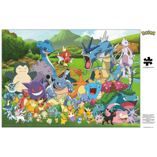 Cuenta con docenas de Pokémon populares de las siete regiones! Pikachu, Eevee, Snorlax, Mewtwo, Magikarp y muchos más aparecen en este emocionante retrato grupal. Los rompecabezas Silver Select son imágenes curadas e intemporales de Pokémon y más. Están empaquetados en una caja de regalo con detalles de lámina plateada, utilizan tablero de rompecabezas reciclado de primera calidad e incluyen un diagrama a todo color.