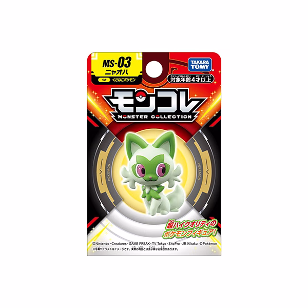 - De la serie MonColle llega esta nueva figura en vinilo de Sprigatito! Esta increíble serie de figuras de vinilo es una manera perfecta de exhibir una colección de Pokémon. Con un diseño y una paleta de colores precisos en pantalla, esta increíble figura es perfecta para los fanáticos de este Pokémon. ¡Colecciona una amplia variedad y muestra la colección de Pokémon de tus sueños