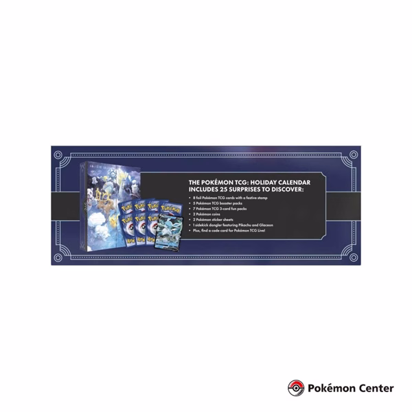 - Celebra la temporada con 25 días de sorpresas en JCC Pokémon: Calendario navideño! Desde cartas foil especiales hasta sobres y más, hay un regalo Pokémon diferente para abrir cada día.JCC Pokémon: Calendario navideño incluye 25 sorpresas por descubrir: