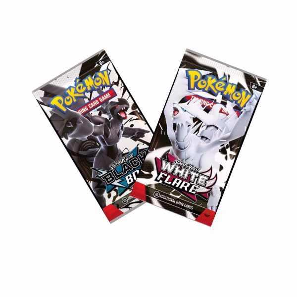 • 1 paquete de refuerzo de Scarlet & Violet—White Flare. Cada sobre contiene 10 cartas y 1 Energía Básica. Las cartas varían según el sobre