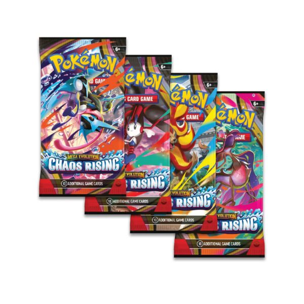 El ajetreo de la ciudad se convierte en caos cuando Mega Floette ex siembra el caos en las calles! Lleno de coraje y determinación, Mega Greninja ex reúne a otros poderosos Pokémon Mega Evolución ex, incluyendo a Mega Pyroar ex y Mega Dragalge ex, para repeler esta creciente amenaza. ¡Al caer la noche, el peligro florece en la expansión Pokémon TCG: Mega Evolución—Caos Ascendente!