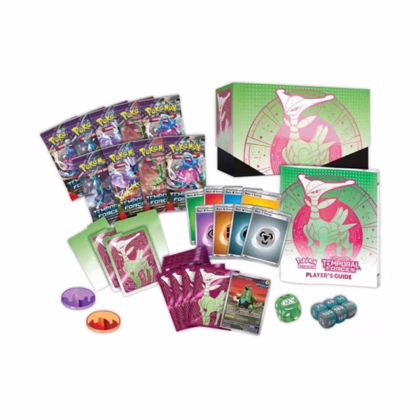 ¡Poderes antiguos y futuros perduran! ¡Las filas de Pokémon Antiguos y Futuros continúan creciendo! Walking Wake ex rompe con el pasado junto a Raging Bolt ex, mientras que Iron Leaves ex entrega justicia de alta tecnología con Iron Crown ex. Fuera del Área Cero, Wugtrio y Farigiraf cambian de tipo como Pokémon Tera ex, y Entrenadores Pokémon de todas partes se preparan para el regreso de las cartas ACE SPEC con efectos únicos y poderosos. ¡Una ruptura en el tiempo trae bestias salvajes y visiones cibernéticas para la batalla en la expansión Scarlet & Violet—Temporal Forces!