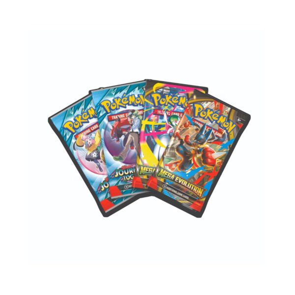 Tras la Megaevolución, la cría de Kangaskhan se convirtió en una fuerza imparable, ¡y ambos combinarán sus poderes como Mega-Kangaskhan ex para robar cartas extra con Encargo Urgente e intentar infligir aún más daño lanzando monedas con Combo Incesante! Une fuerzas con Mega-Kangaskhan ex que llega en forma de carta promo holográfica lista para jugar y en versión lenticular jumbo para presumir. ¡Además encontrarás otras increíbles cartas en los 4 sobres de refuerzo incluidos!