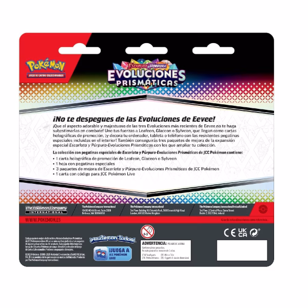 - 3 paquetes de refuerzo : Scarlet & Violet – Evoluciones prismáticas, con infinitas posibilidades y cartas emocionantes.