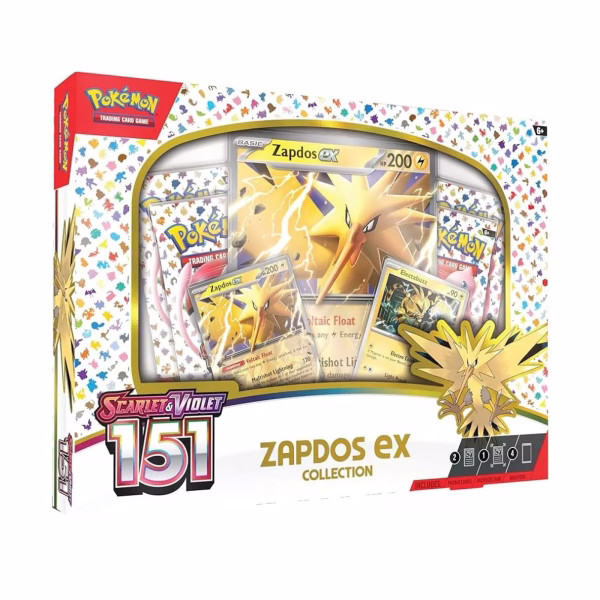 Zap a tu oponente y haz un retiro rápido con Zapdos ex! Golpea con poder electrizante y luego retrocede tan rápido como un rayo con Zapdos ex! Este Pokémon legendario de la región de Kanto está aquí como una carta promocional lista para jugar y una carta de gran tamaño para tu colección, junto con una carta de aluminio con Electabuzz, y más paquetes de Pokémon dentro de la expansión especial Scarlet & Violet—151.