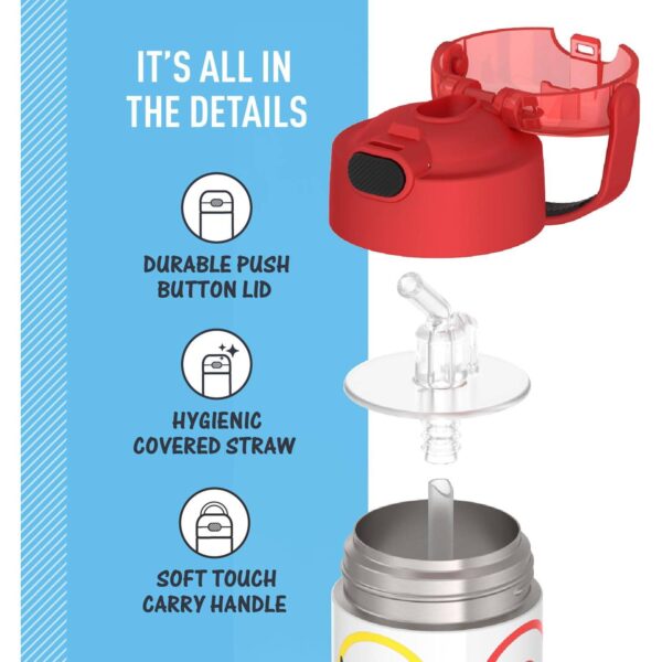 - Botella de agua para niños perfecta para la escuela y el uso diario. Fabricada en acero inoxidable 18/8 de alta calidad para resistir caídas, golpes y proporcionar durabilidad y fiabilidad a diario.