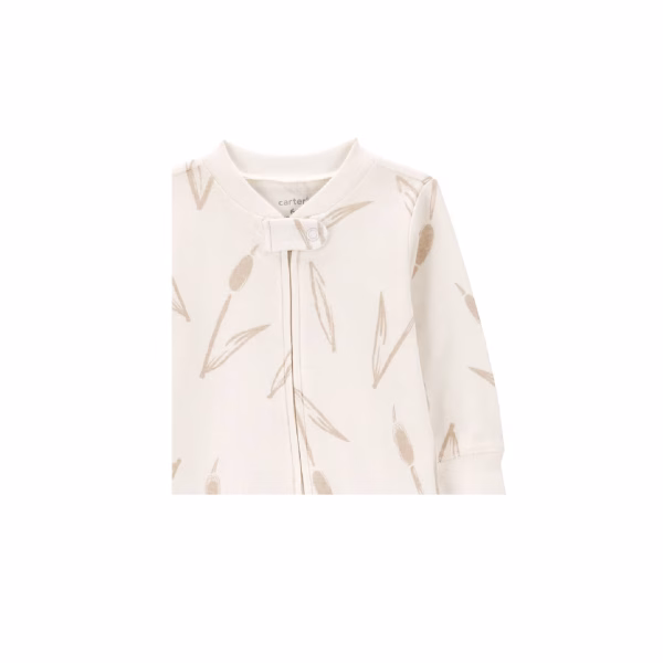 Enterizo de Manga Larga: De color blanco con un encantador estampado de pequeños animalitos en tonos marrones, este enterizo es ideal para mantener a tu bebé abrigado. Las mangas largas y el diseño que cubre los pies proporcionan calidez adicional. El cierre frontal de cremallera facilita el cambio de ropa y pañales, ofreciendo comodidad tanto para el bebé como para los padres.